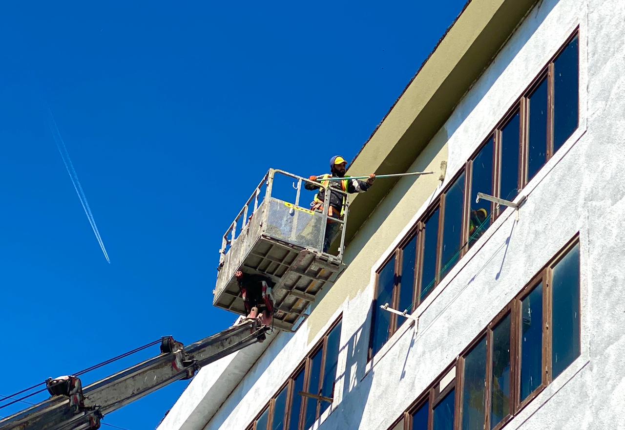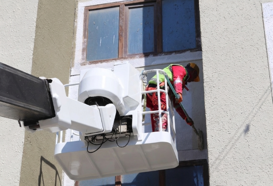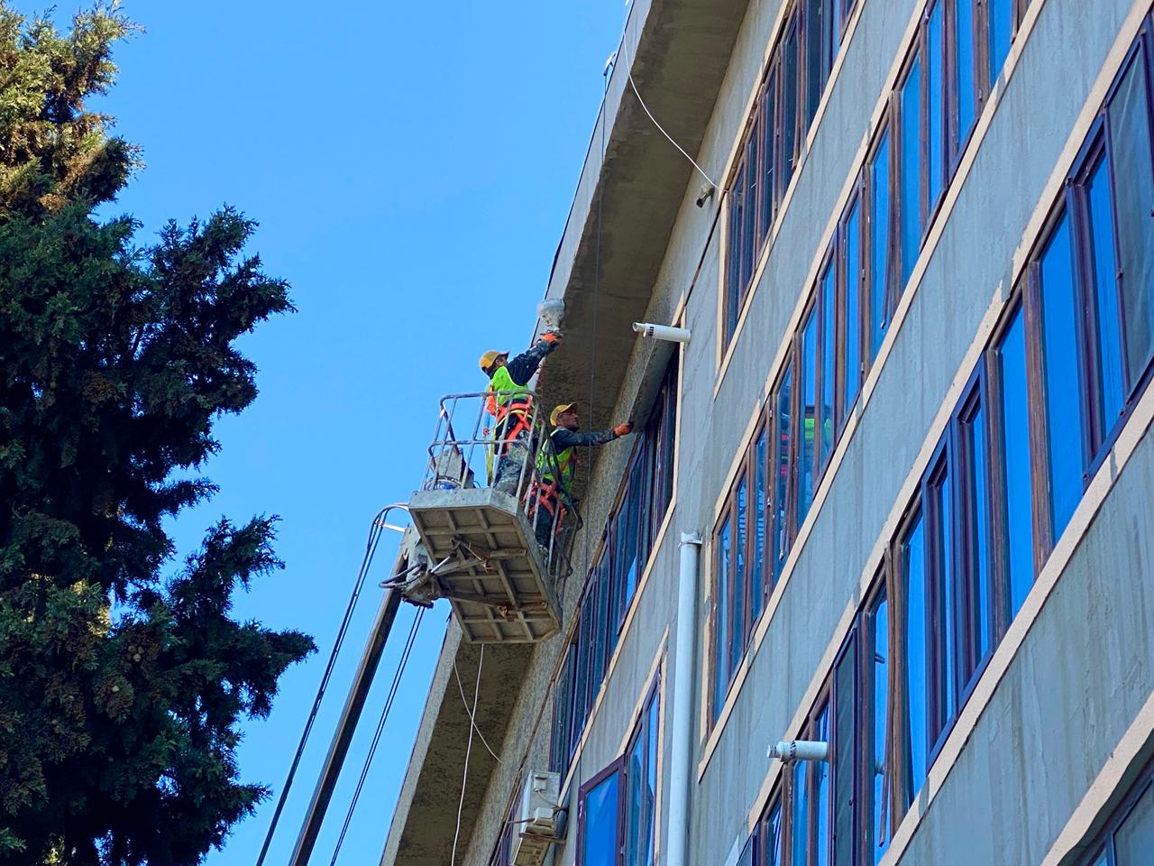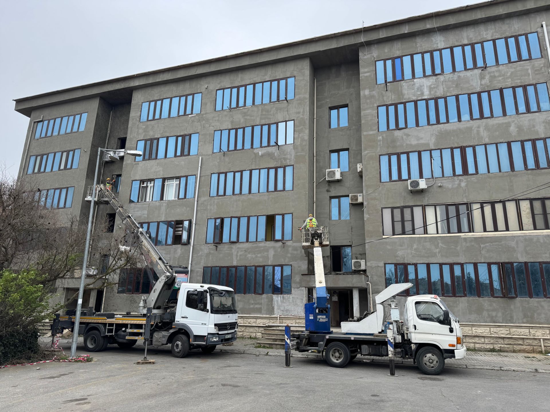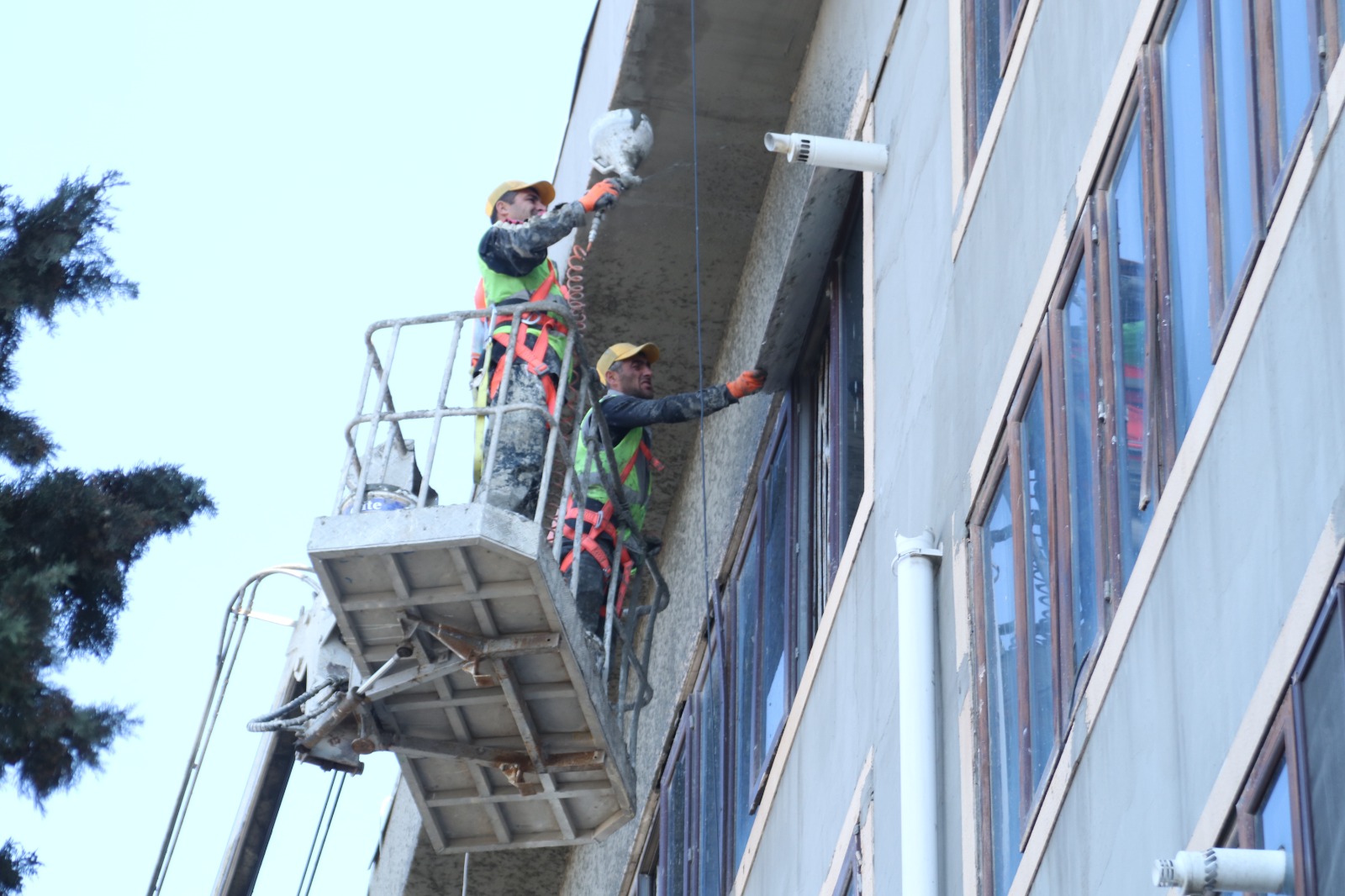 Görülən tədbirlər çərçivəsində binaların fasadında suvaq işləri aparılır, yararsız betopan örtüklər və pəncərə konstruksiyalarındakı zədələnmiş şüşə-paket elementləri yeniləri ilə əvəz olunur.