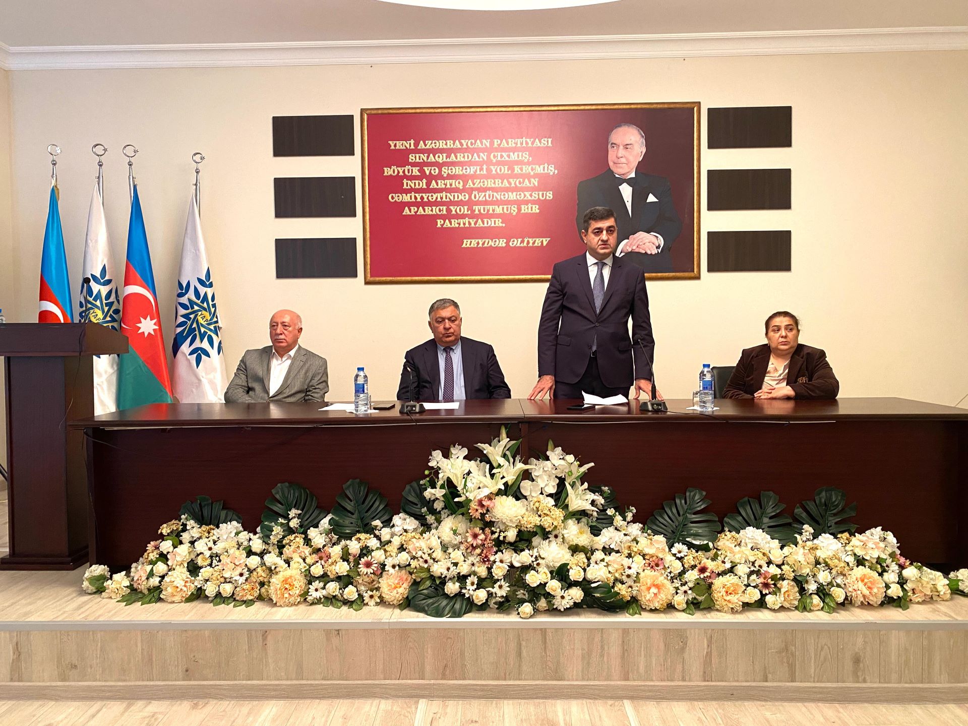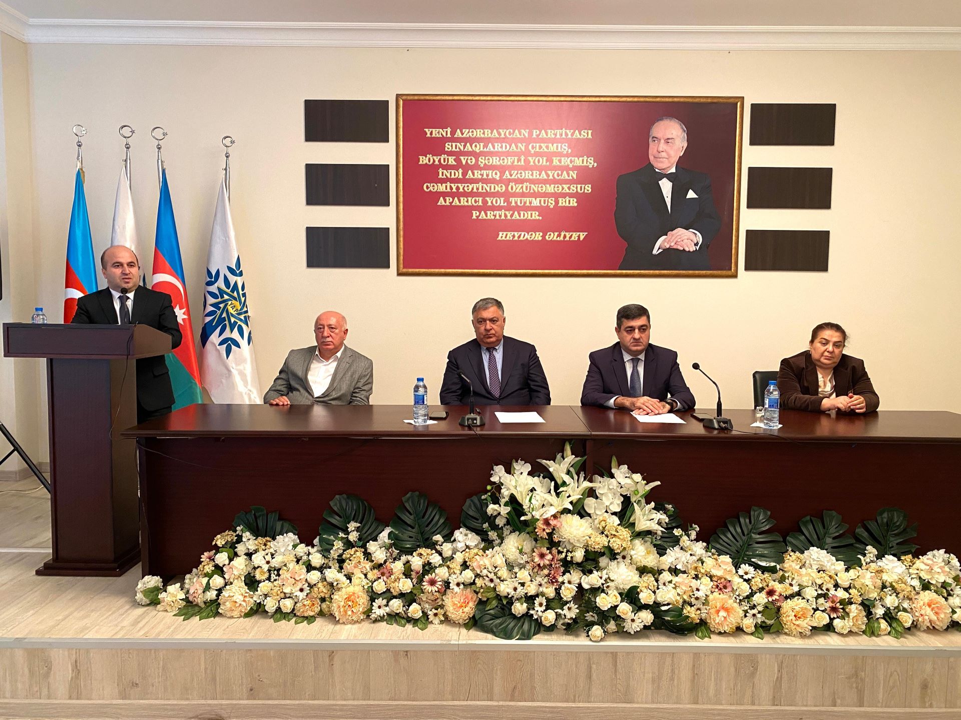 YAP Xəzər rayon təşkilatının inzibati binasında təşkil olunan tədbirdə ilk öncə qonaqlar foyedə Ulu öndər Heydər Əliyevin əziz xatirəsini yad edərək, abidəsi önünə güllər düzüblər. Akt zalında davam edən görüşdə Azərbaycan Respublikasının Dövlət Himni səsləndirilmiş, Vətənimizin ərazi bütövlüyü uğrunda canlarından keçən şəhidlərimizin əziz xatirəsi bir dəqiqəlik sükütla yad edilmişdir.
