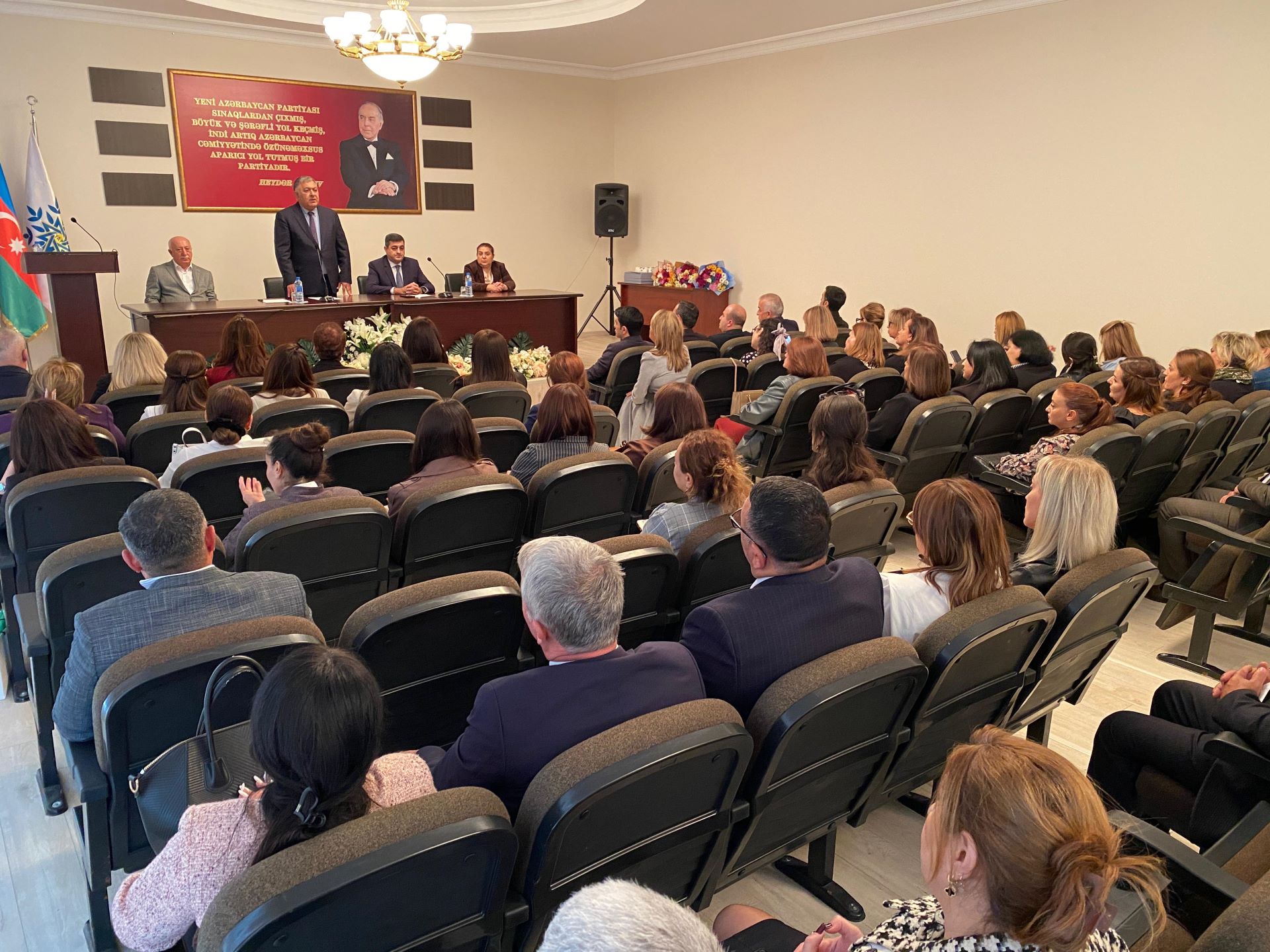 Bayram tədbirini YAP Xəzər Rayon Təşkilatının sədri Namiq Əhmədov açaraq bu əlamətdar gün münasibəti ilə təhsil işçilərini təbrik edib, onlara çətin və şərəfli işlərində uğurlar arzulayıb. N. Əhmədov ölkə rəhbərliyinin təhsil sahəsinə diqqət və qayğısından, aparılan islahatlardan danışıb, 44 günlük Vətən Müharibəsində ərazi bütövlüyümüzün bərpası naminə gənclərimizin göstərdiyi qəhrəmanlıqlardan, onların şücaətindən söhbət açmışdır.