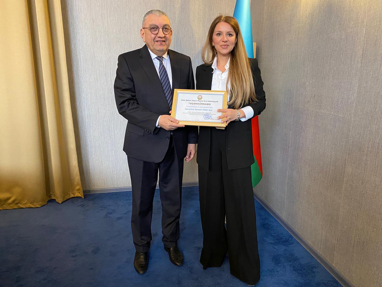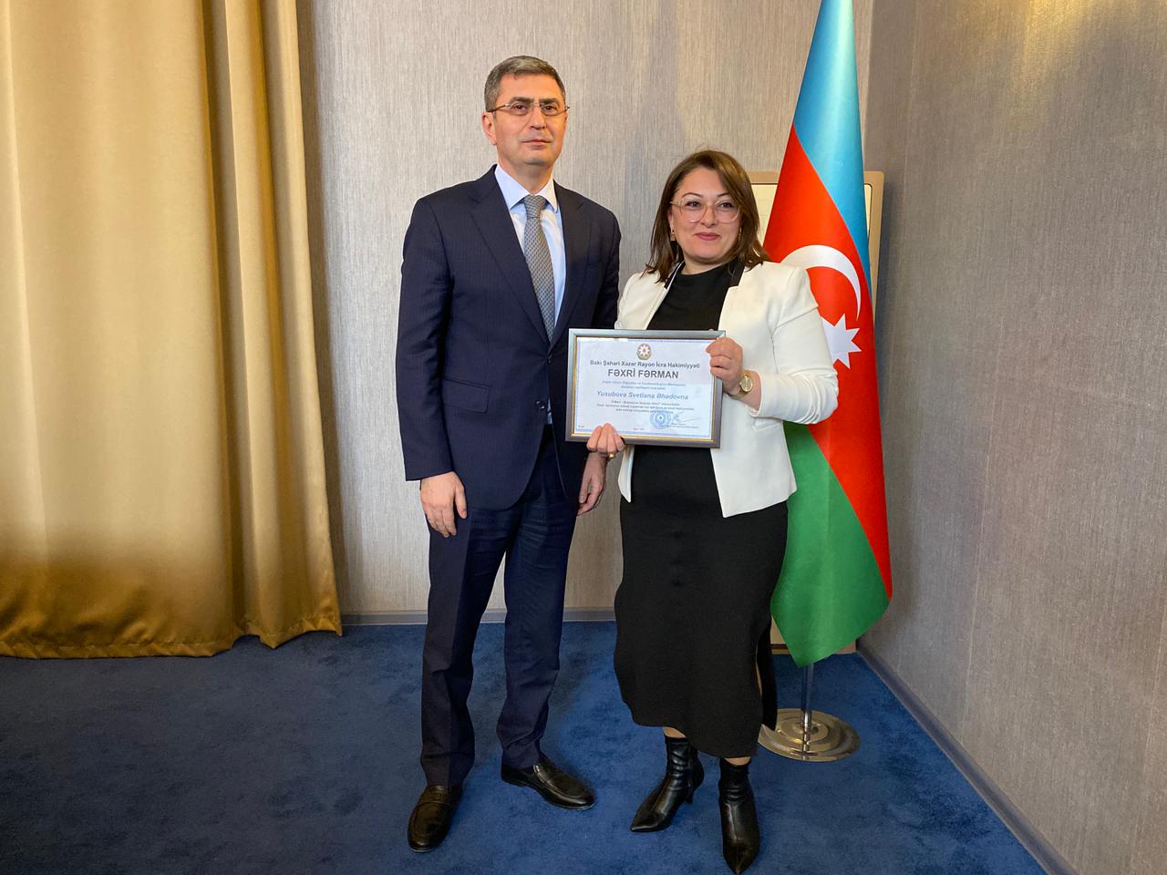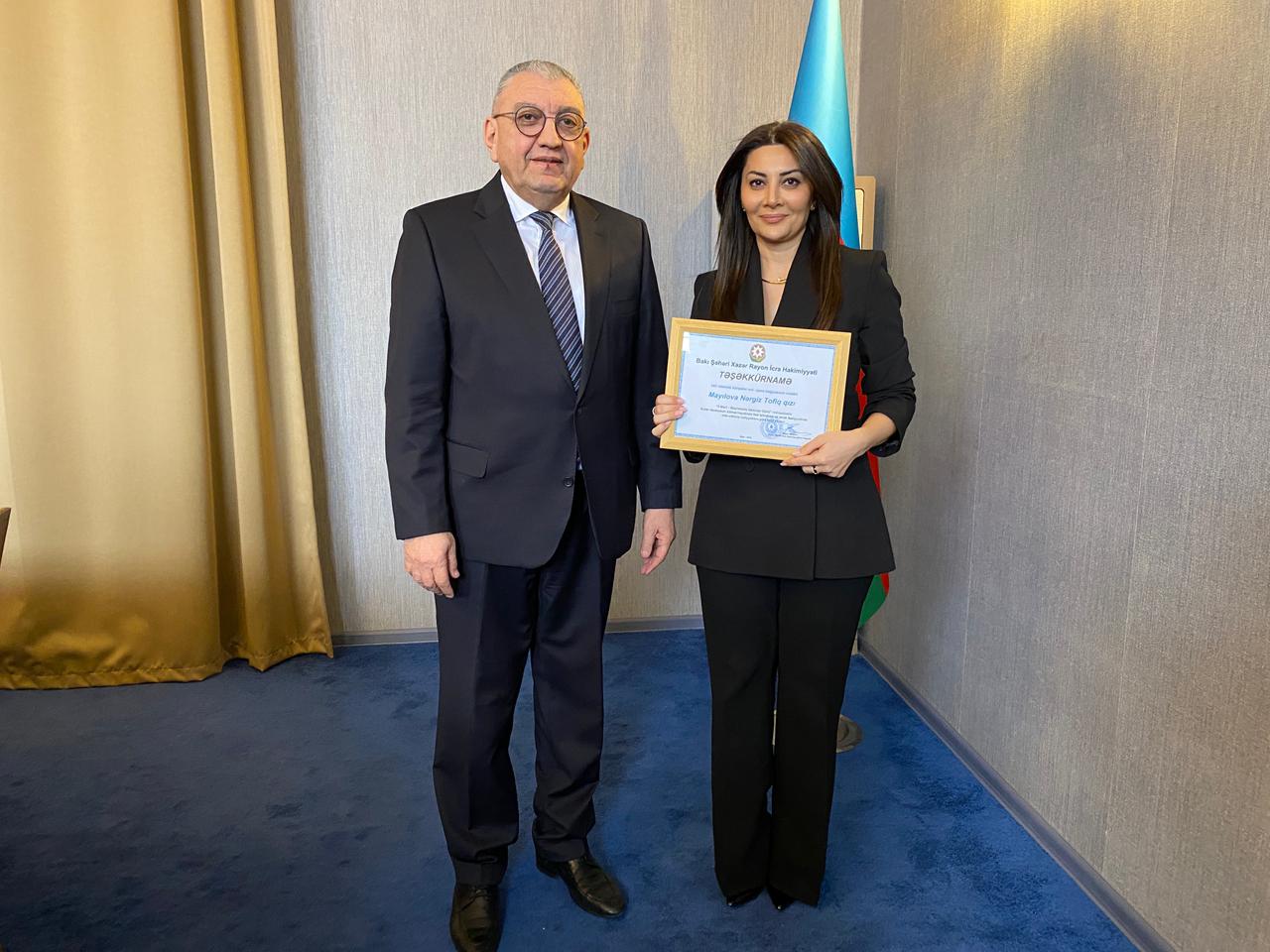 Sonda rayonun ictimai həyatında fəal iştirakına və əmək fəaliyyətində əldə edilmiş nailiyyətlərə görə “8 Mart – Beynəlxalq Qadınlar Günü” münasibəti ilə bir qrup rəhbər qadınlar Xəzər Rayon İcra Hakimiyyəti və Yeni Azərbaycan Partiyası Xəzər rayon təşkilatının Fəxri Fərman və Təşəkkürnamələri ilə təltif edilib, onlara gül dəstələri və bayram hədiyyələri təqdim olunub, xatirə şəkli çəkilib.