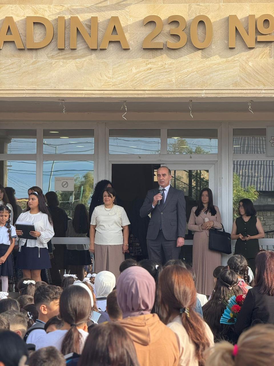 Təhsil sahəsində əldə olunan uğurların Ümummilli Lider Heydər Əliyevin təhsil sahəsindəki siyasətini uğurla davam etdirən dövlət başçısı cənab İlham Əliyev və ölkənin birinci xanımı Mehriban Əliyevanın təhsilin inkişafına ayırdığı diqqət və xüsusi qayğısının bariz nümunəsi olduğunu çıxışında vurğulayan RİH rəsmiləri, yeni tədris ilində müəllim və şagirdlərə yeni-yeni uğurlar və müvəffəqiyyətlər arzulamışdır. Tədbirin sonunda qonaqlara məktəb şagirdlərinin hazırladığı bədii kompozisiya, şerlər, məktəb həyatından bəhs edən və vətənpərvərlik mövzusunda mahnılar, milli rəqslər təqdim olunmuşdur. Bir-birindən maraqlı, rəngarəng kompozisiyalar ilə çıxış edən birincilər yeni tədris ilinə yüksək əhval-ruhiyyə ilə başladılar.