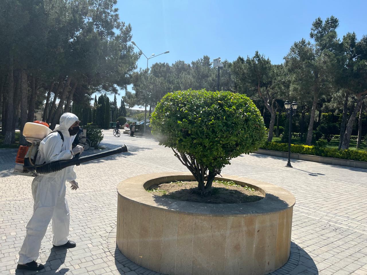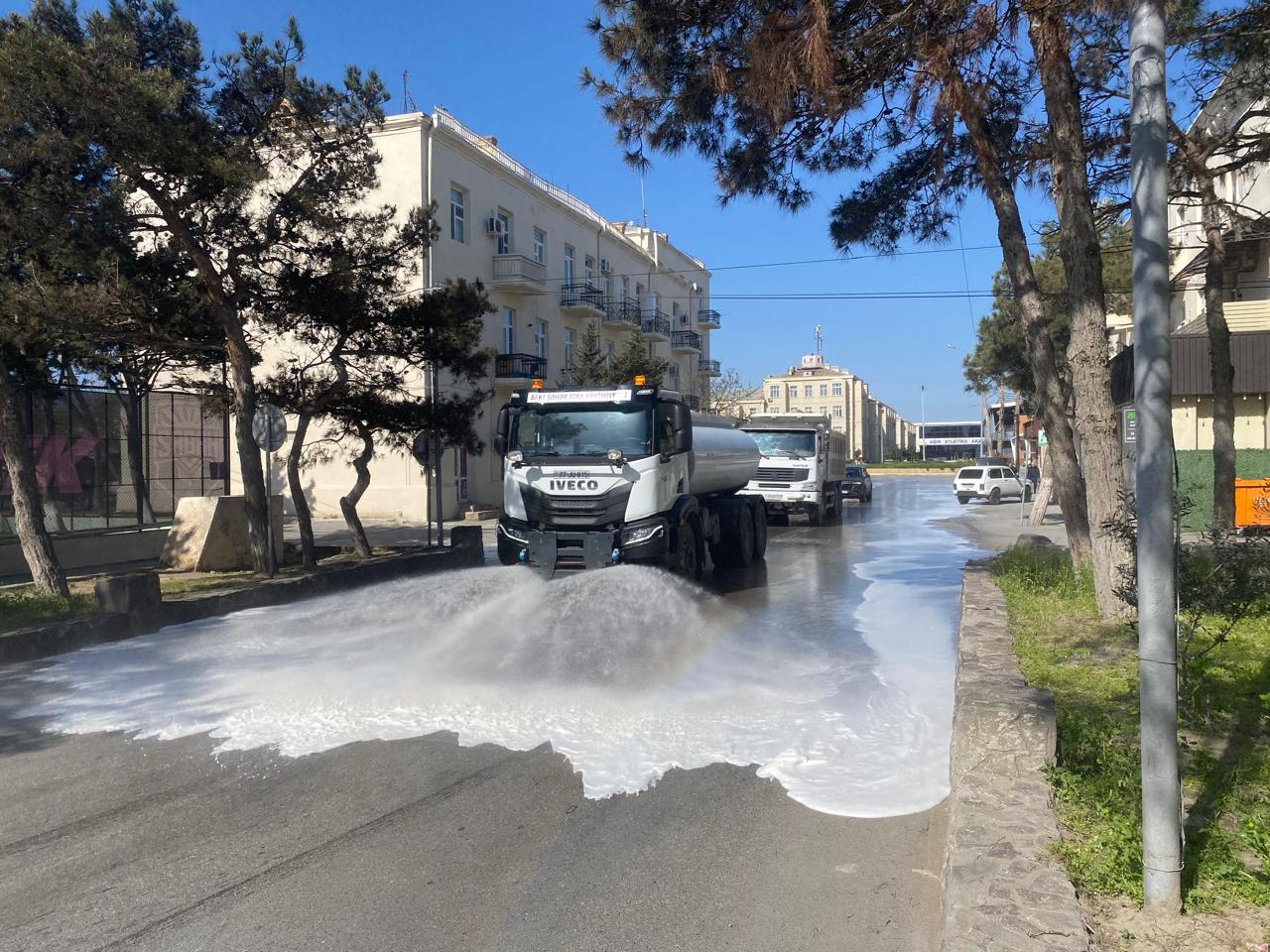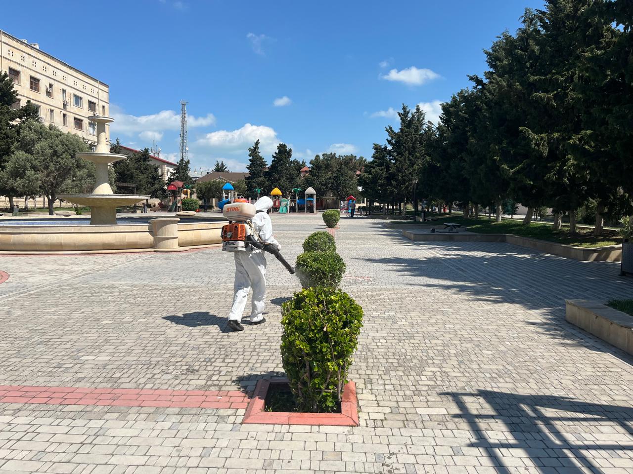 İcra olunan abadlıq tədbirləri çərçivəsində mərkəzi prospekt və küçələr, piyada səkiləri, yol kənarı bordürlər, işıq dirəkləri və qoruyucu məhəccərlərlə yanaşı, park və xiyabanlardakı oturacaqlar yuyularaq sanitariya normalarına uyğunlaşdırılıb.