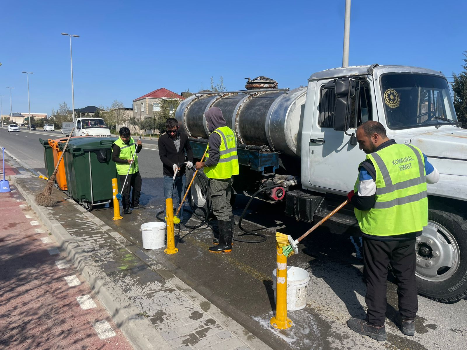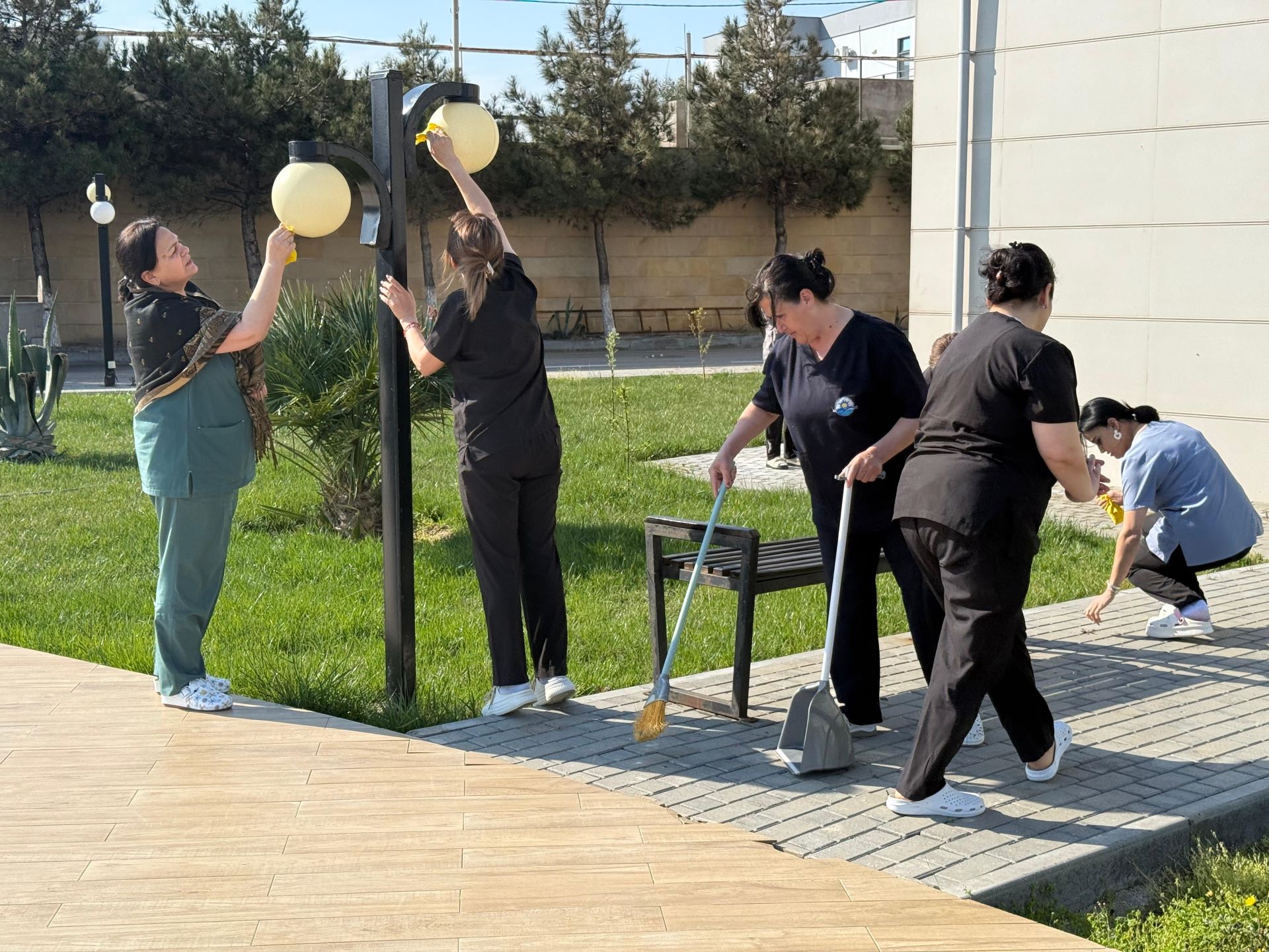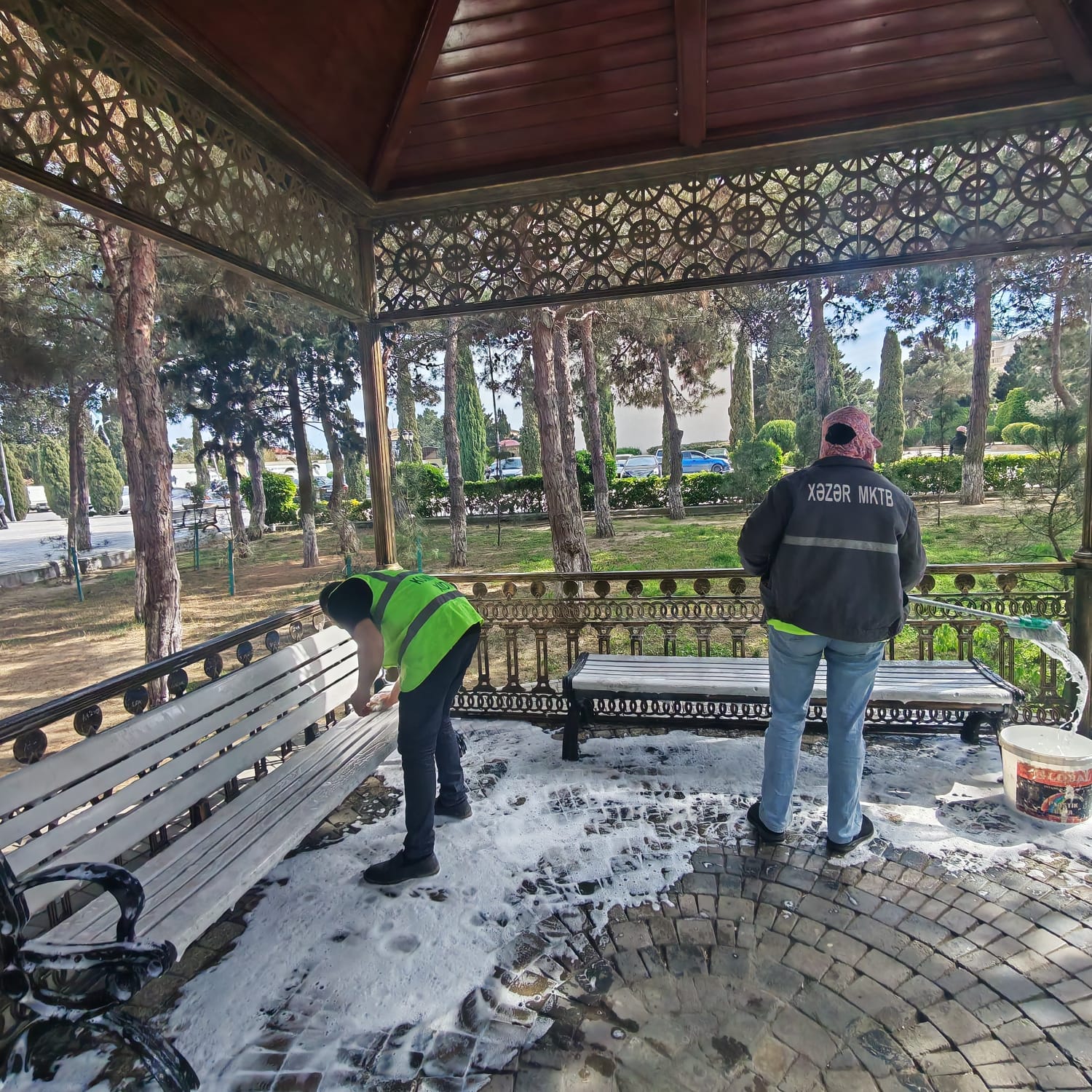 İcra olunan abadlıq tədbirləri çərçivəsində mərkəzi prospekt və küçələr, piyada səkiləri, yol kənarı bordürlər, işıq dirəkləri və qoruyucu məhəccərlərlə yanaşı, park və xiyabanlardakı oturacaqlar yuyularaq sanitariya normalarına uyğunlaşdırılıb.