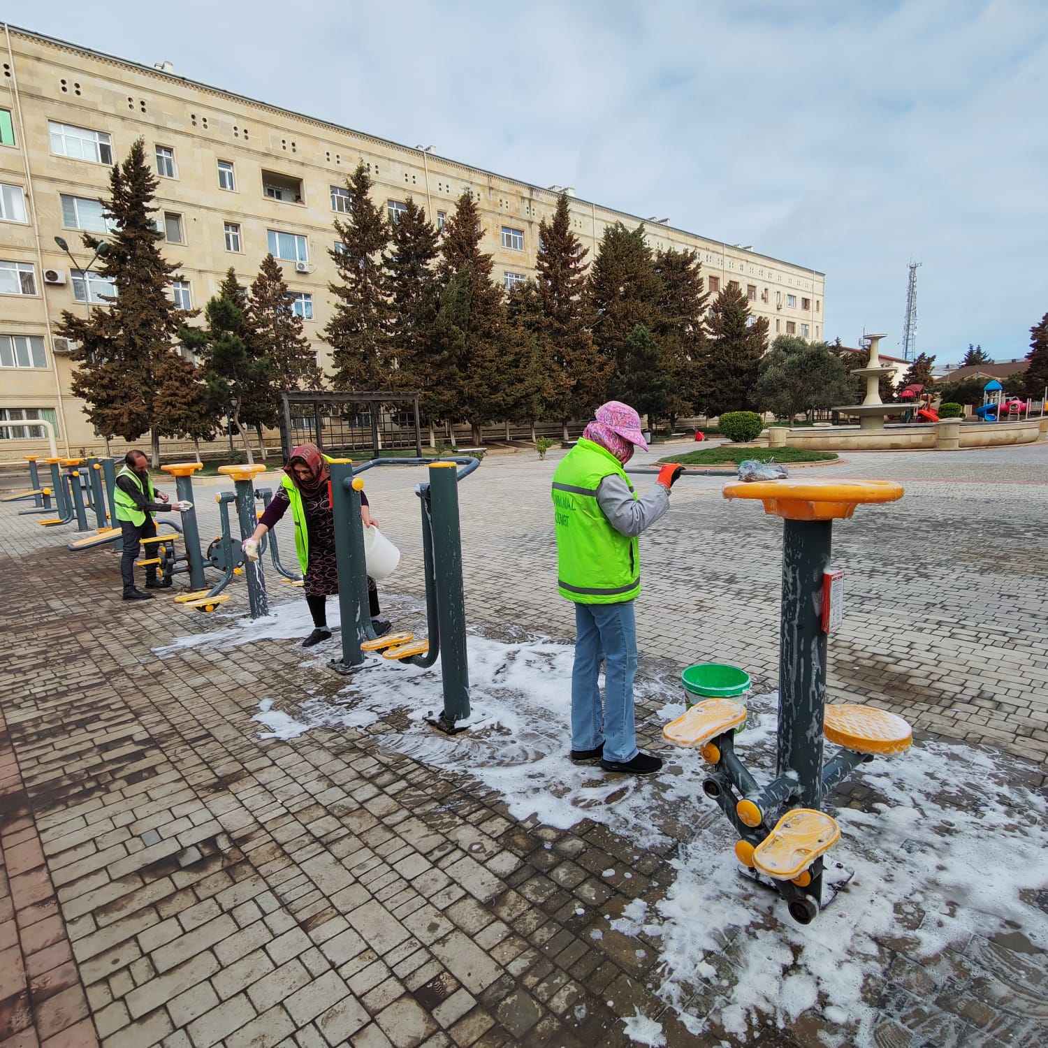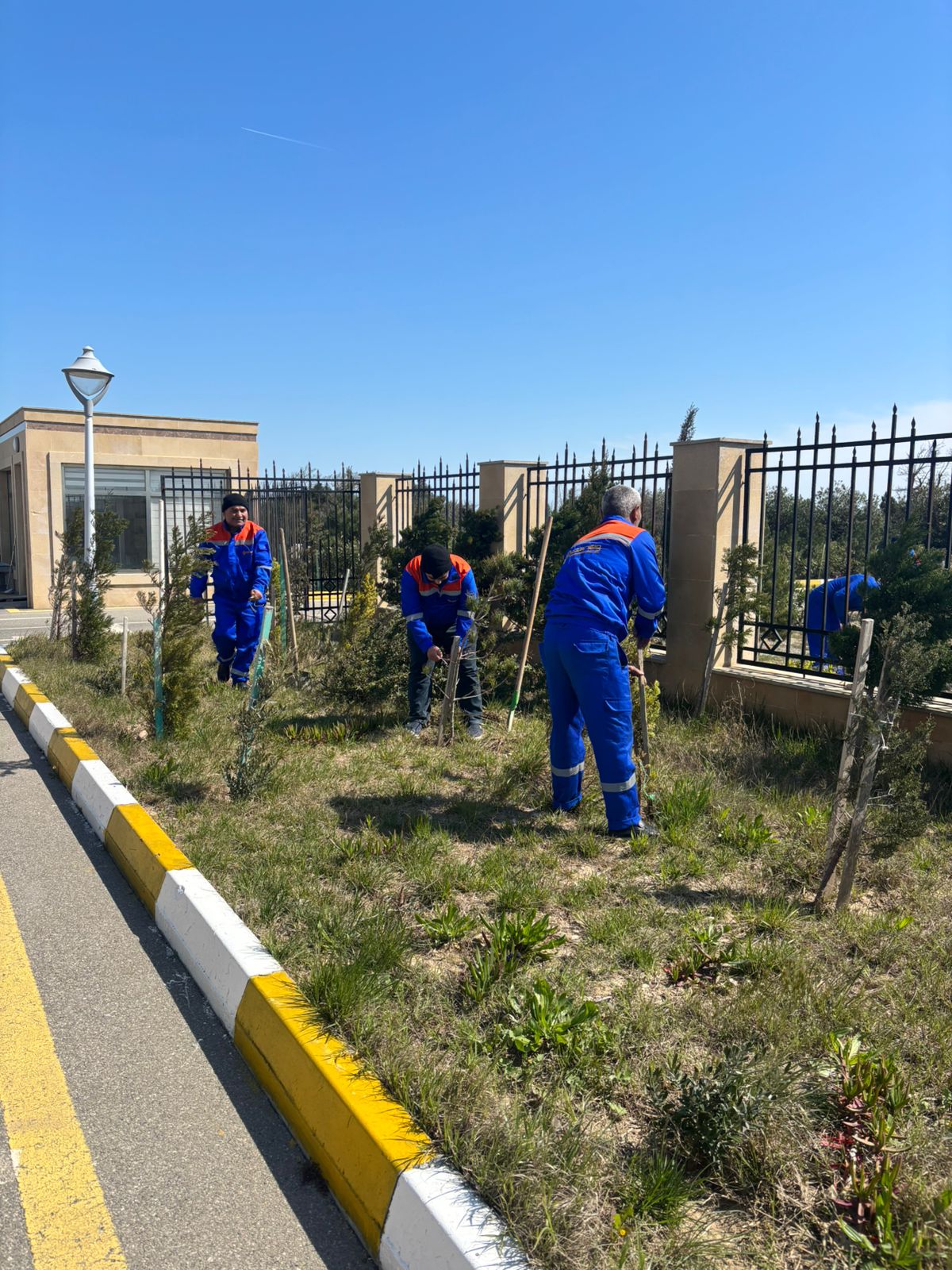 Eyni zamanda Rayon Yaşıllaşdırma Sahəsinin əməkdaşları tərəfindən yol və prospektlərin kənarlarındakı ağacların və yaşıllıqların üzərinə yığılan toz-torpağın yuyulması, onlara aqrotexniki qulluq göstərilməsi də həyata keçirilib.
