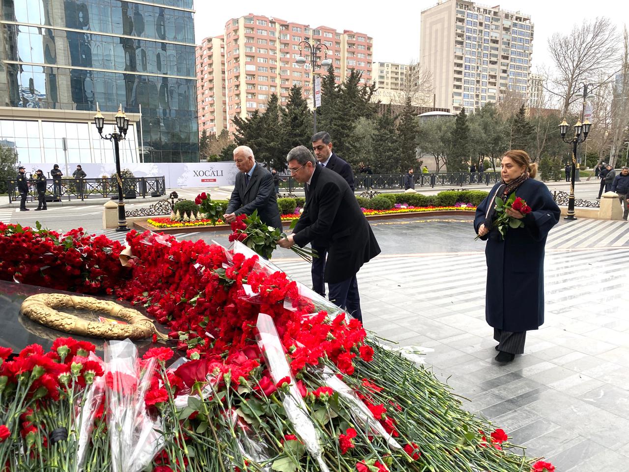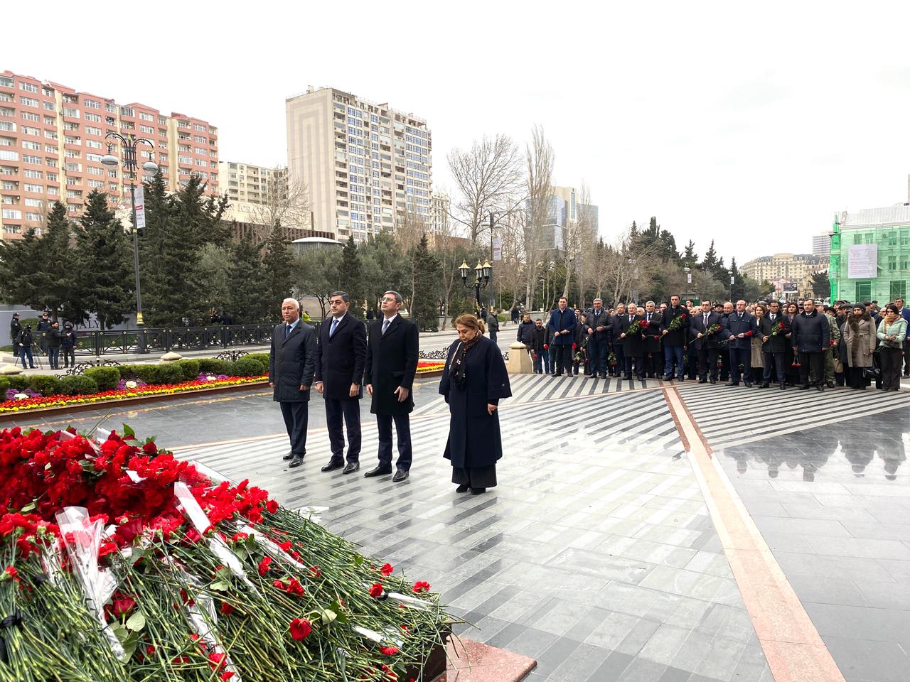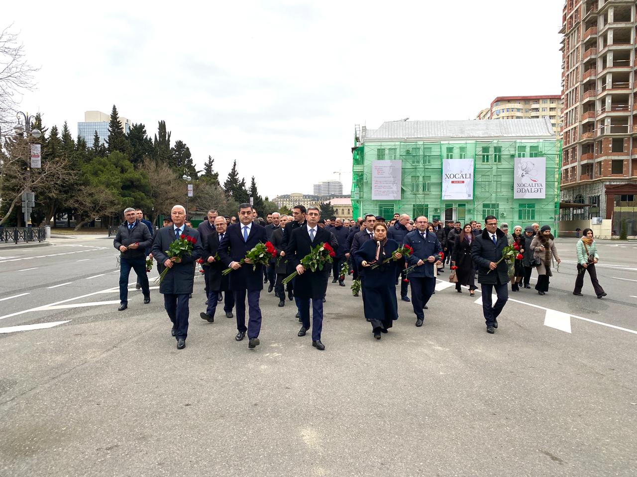 Xocalı faciəsinin 34-cü ildönümü ilə əlaqədar Xəzər Rayon İcra Hakimiyyətinin rəhbərliyi və əməkdaşları, rayon ictimaiyyətinin nümayəndələri “Ana harayı” abidəsini ziyarət etmişlər