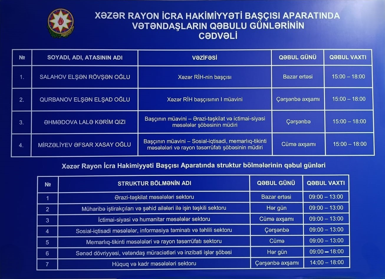Azərbaycan Respublikası Bakı Şəhəri Xəzər Rayon İcra Hakimiyyəti